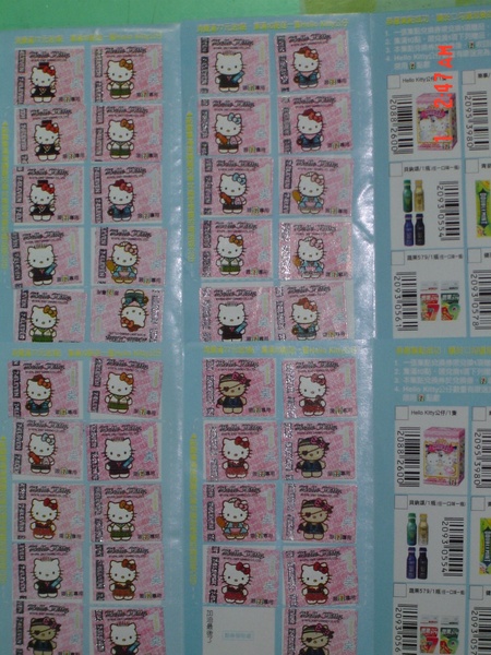 發現了四張Hello Kitty角色扮演公仔的7-11集點卡,只有一張沒貼滿,差一點