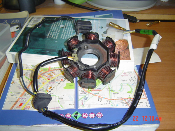 上圖為我的小G上拆下來的單相發電的線圈,看到上方有一個黑色四方體的東西沒?